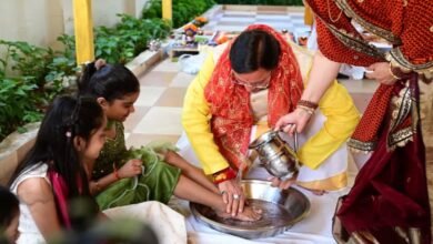 उत्तराखंड में दुर्गा अष्टमी पर कन्याओं का पूजन, सीएम धामी ने पैर पखारकर लिया आशीर्वाद