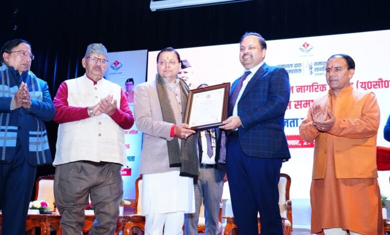 देहरादून । मुख्यमंत्री  पुष्कर सिंह धामी ने मंगलवार को हिमालयन कल्चरल सेंटर गढ़ी कैंट में आयोजित प्रथम “समान नागरिक संहिता दिवस” को संबोधित किया। इस मौके पर उन्होंने समान नागरिक संहिता को तैयार करने वाले कमेटी के सदस्यों, कुशल क्रियान्वयन करने वाले प्रशासनिक अधिकारियों और पंजीकरण में योगदान देने वाले वीएलसी को भी सम्मानित किया। कार्यक्रम के दौरान मुख्यमंत्री ने यूसीसी पर आधारित फोटो प्रदर्शनी का अवलोकन भी किया।