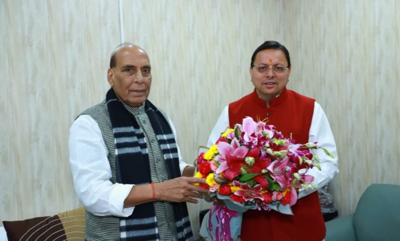 मुख्यमंत्री धामी ने नई दिल्ली में केंद्रीय रक्षा मंत्री राजनाथ से शिष्टाचार भेंट की